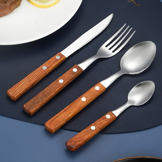 304 stainless steel cutlery with red solid wood handle